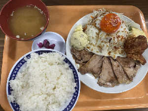 お子様ランチのようだ。大瓶とチャーシューエッグを追加して締めました。旨し!