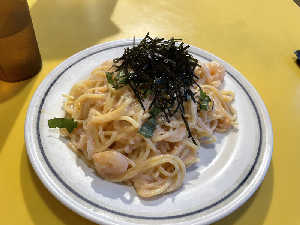 光明泉のサ飯は関谷スパゲッティかおにやんま。