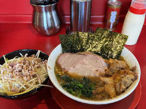 今日は本日限定で牛骨の家系でした。まろやかながらも家系のパンチがしっかりあってGOOD👍