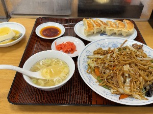 ソース焼そば+焼餃子+豆乳杏仁プリン(完熟梅の黄金ソース)