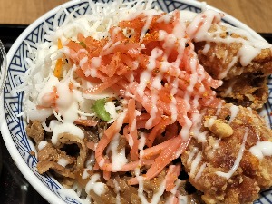 噂の豚の角煮定食が食べたかったけど売り切れ😭唐揚げと牛がのった贅沢丼でリカバリー😋