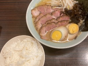 家系の店なんで半ライス付けたら、G系でしたわ。ライス要らんかったな、最後は背脂イスにしてズズッと
