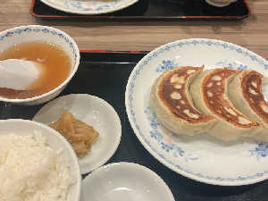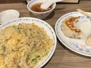 餃子肉汁たっぷり 炒飯は味濃いめのさっぱり。