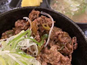 ウシでは無く、ウマ丼😁 みそ汁がなんと馬筋入り‼️ めちゃくちゃうんまい🩷