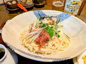 うずらの玉子が席に置いてあり、食べ放題。ツルッツルの綺麗で美味しいうどん!