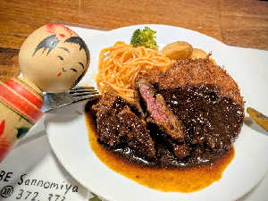 老舗の洋食屋さんにて、柔らか和牛と香ばしい衣を素晴らしいデミグラスソースがまとめる美味ヘルシー