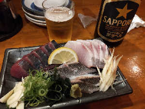 お造り3種、ジャコカツ、土佐巻き