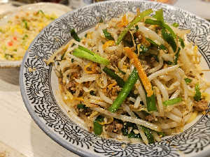 シャキシャキ野菜炒めでスタミナたっぷり。 あっさりミニ白チャーハンもお気に入りです。