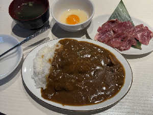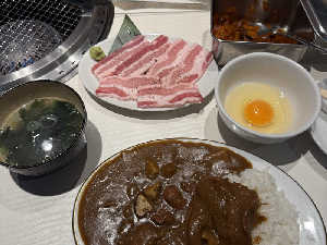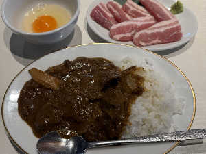 焼肉屋さんの賄い牛タンカレー(生たまご)豚バラ塩キムチ盛り合わせ