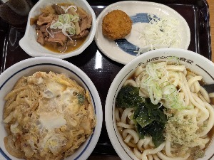 かき揚げ丼 + ミニパンチ + たぬきうどん 普通においしかったです。