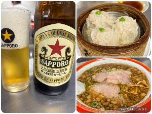 初そのだ😋中華そばだけのつもりが、赤星とシュウマイも🤣