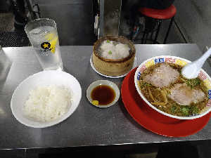 中華そば、シウマイ、ラムパクチー炒飯(パクチー抜き)