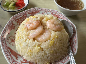 えびちゃーはんと、餃子を食べて、満腹満腹。