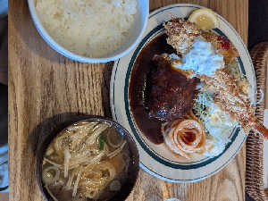 ハンバーグ柔らかい。揚げ物サックサク。 美味しかったです。横向きなのは許して。