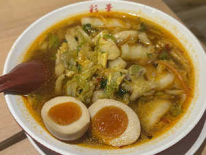 煮卵を乗せて。今夜は「また寄ってしまった……」ではなく「サ飯はサイカやで〜♪」と前向きに。