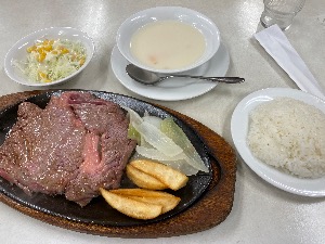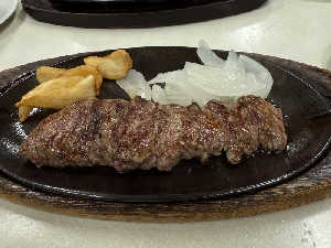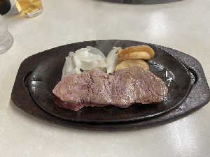 ホテルから近くのステーキ ジューシーすぎてもはや飲み物
