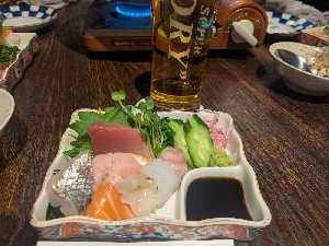 宇部の名物。美味しい板わさでした お店の売りの豚しゃぶ、1人前からOKでした