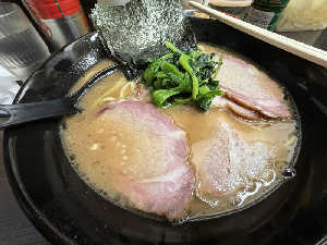 カエシが強めのオーソドックス良質家系ラーメンがお。チャーシュー、ほうれん草うまがお。とりとりー。