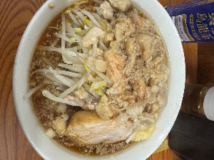サウナ後の二郎は普段より罪悪感が薄まるのでオススメです、麺量がとても多く麺少なめでもギリギリでした。