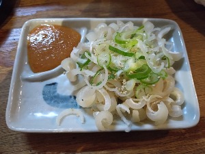 もつ煮込みに豆腐が入っているやつ♬ピリ辛で美味しかった☆