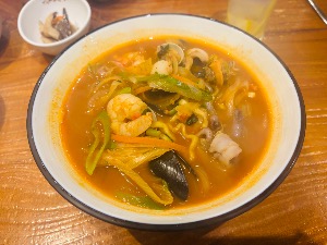 海鮮、野菜、具沢山で美味しい✨海鮮の味がしっかりスープに染み染み🤤