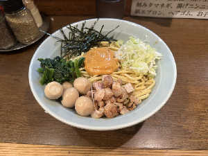 にんにくトッピング、ライス無料で850円。 サウナ後に最高。