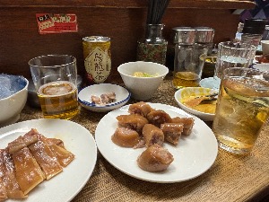 手前にある芥子を酢で溶いたものに付けて食べると更に美味🤤飲み過ぎ注意⚠️(飲み過ぎた人より😅)