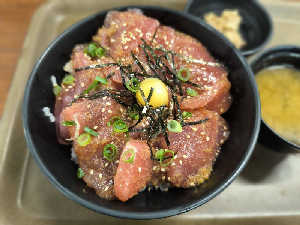 個人的には普通の漬け丼より美味しい 卵黄は子どものネギトロ丼からコンバートされました(笑)