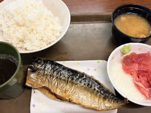 車中泊して、翌朝まぐろレストランで朝定食¥600