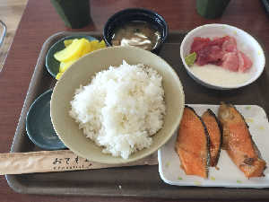 車中泊して、翌朝まぐろレストランで朝定食¥600