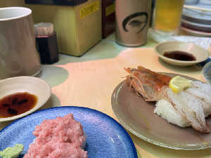 マグロの中落ち、生ゲソ、アジ、ボタンエビ、とろサーモン