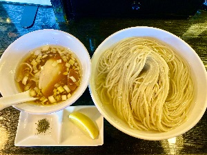 背脂たっぷりの塩スープはあっさりだが鰹節効いてモチモチの太麺に負けてなくめっちゃウマ😍