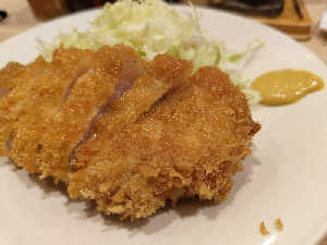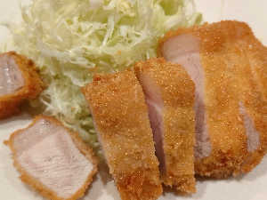 目の前で揚げてもらえるとんかつ、背筋がのびる美味しさ。ドレッシングも気に入って実家土産に追加。