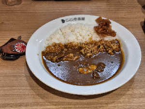 サ飯はカレー🍛が食べたくなりココイチへ。 店舗限定の牛すじカレー🍛はほうれん草と相まり美味しい😋