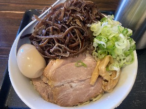 先着早得ゴロゴロチャーシュー入り。割りスープだけレンゲですくって飲むと煮干しの出汁がしておいしい。