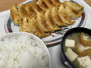 野菜たっぷりの餃子🥟お味噌汁も美味しかった!