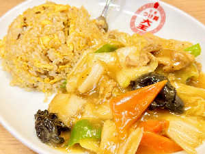 甘酢に筍等の野菜添えられてる、白飯タイプ つけ麺は意外とハマる