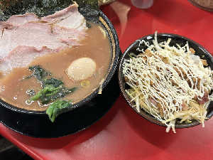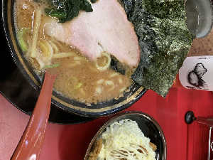 野菜はスープが薄まるので不要でした。家系にライスは必須ですが、この後炒飯食べるのにまぶしの量エグい…