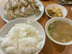 手作り餃子が美味しい。豚汁嬉しい。キムチうまくてその日に帰るなら持ち帰りを検討するレベル