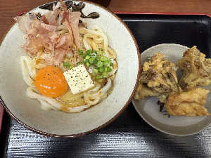 うどんは身体に染みるし、厚いハムは最高、カツオにかかったタレが絶妙で美味しすぎました