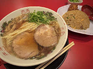 かしわそば大盛りにチャーハンもつけてガッツリ!