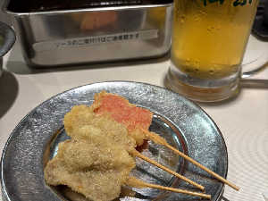 大阪の帰りはサクッと松葉の串カツで1杯🍺 期間限定メニューや本店にないメニューは頼んじゃいます😋
