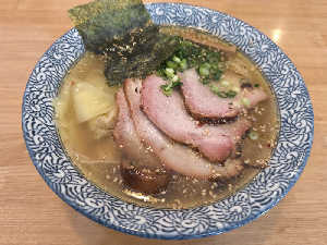 今回は塩味。ハーフでも雲呑・チャーシューともたくさん味わえるのでお得です。迷った時はコレ。