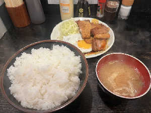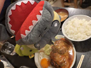 うまうまゲンコツ手作りハンバーグが2個もあってボリュームあるがお。ご飯、味噌汁もあって大満足がお。