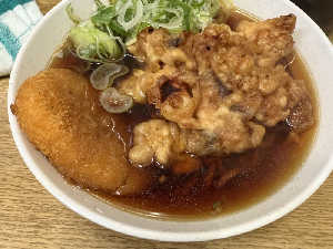 所沢・池袋の駅そばに振られ乗り換え駅日暮里へ。限定ポテト&コーン天とソーセージ天半分追加。バカうま!