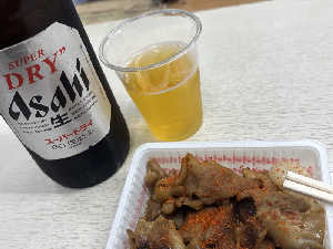 朝から大瓶にホルモンとレバーとアブラとタン、有休サイコー!