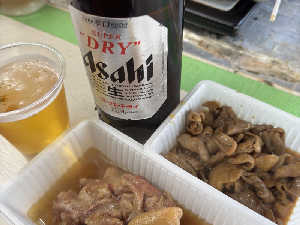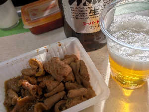 営業してなかった入船温泉の近くでホルモンヤケ食い。