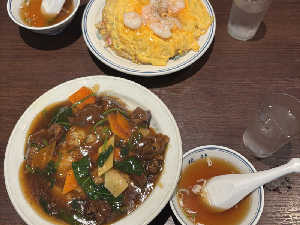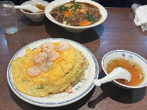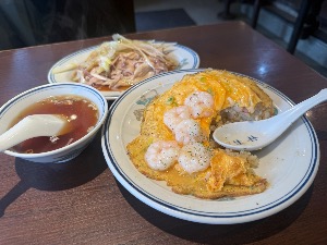 卵ふわふわ。何気に付合わせのスープが美味しい。春巻きセブンの方が⭕️残りを家で食べたが店より美味かった