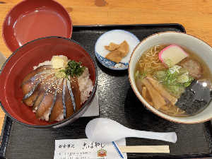 サバの漬け丼、鯖だしラーメン本当に味があっさりしてスープが飲みやすかった。鯖丼の鯖も脂が乗って美味!
