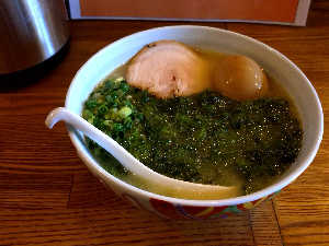 ここまでどっさりあおさが乗ってるのは珍しい。鶏白湯の味わいにあおさの香りもベストマッチ!